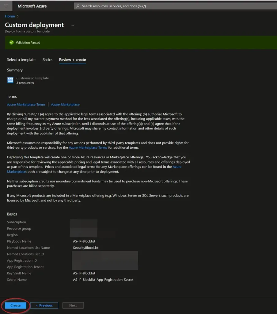 - Select the “Subscription” and “Resource Group” from the dropdown boxes you would like the playbook deployed.