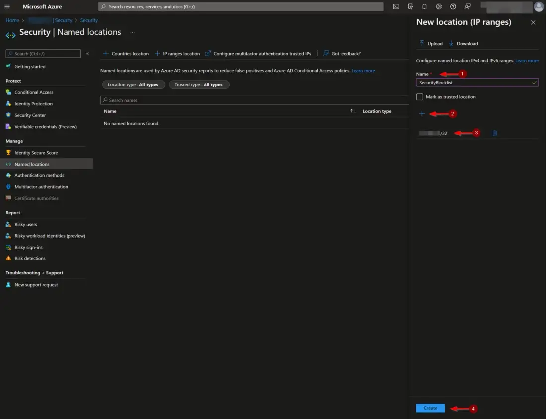 How to add IP addresses from alerts to an Azure Active Directory Location?