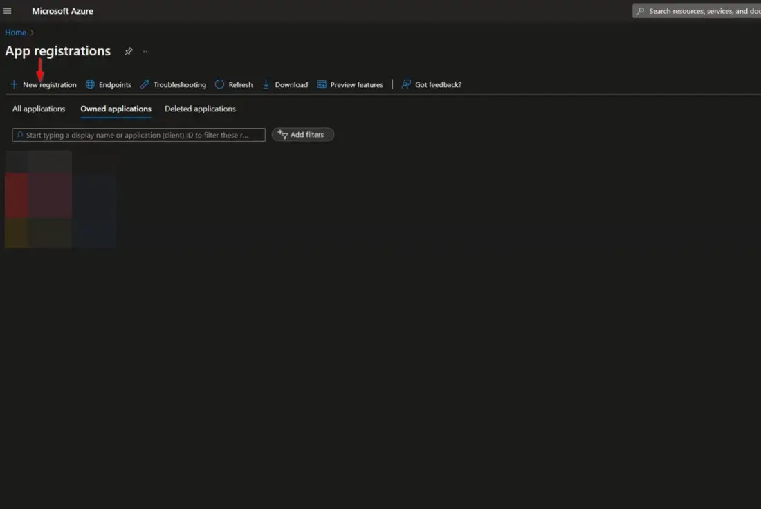 Navigate to the Microsoft Azure Active Directory App Registrations page: